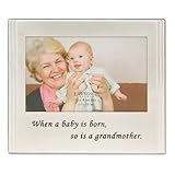- Gorgeous brushed silver plated metal picture frame with black embossed lettering "When a baby is born, so is a grandmother"